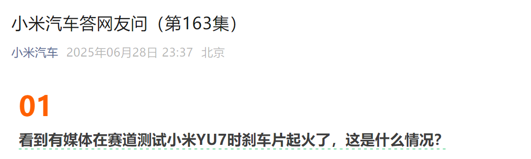 有网友向小米汽车提问:看到有媒体在赛道测试小米YU7时刹车片起火了华盈策略,这是什么情况?6月28日深夜,小米汽车对此进行了回应。