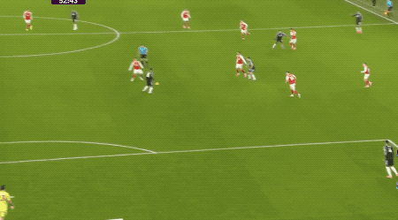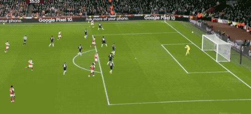 第48分钟,萨卡开出角球,加布里埃尔在的腋下将球打进,这也是阿森纳本场获得的第一个角球。