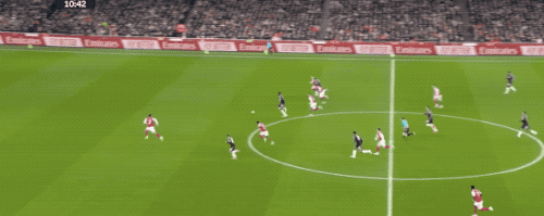 第52分钟,厄德高前场抢断后送出妙传,苏维门迪插入禁区,四两拨千斤,将球捅射入网。