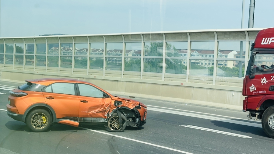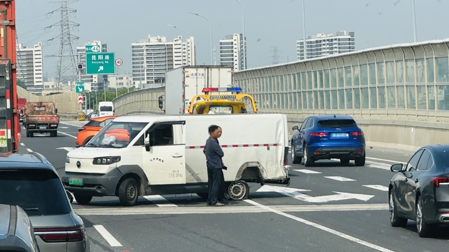 目击市民龚先生告诉新民晚报记者,今天早晨,他打了一辆网约车,准备出门办事。早晨8时57分左右,当网约车经过S32申嘉湖高速往浙江方向近昆阳路收费站时,突然遭遇拥堵,车辆一度停滞不前。逐步恢复通行后,龚先生透过挡风玻璃往外查看,发现一辆SUV与一辆面包车发生碰撞,两辆车都停在高速路上,车内人员均已下车。他拍摄的照片上显示,SUV的右前胎和面包车的左后胎均发生爆胎,车辆的零部件碎片散落一地。“事故发生以后,两辆涉事车都横停在车道上,后方车辆驾驶员只能慢慢变道避让。”