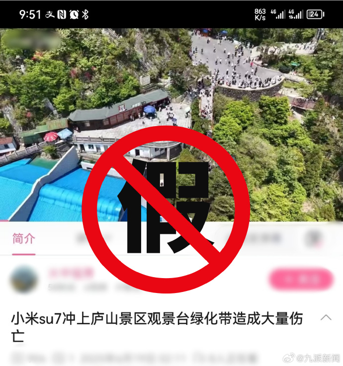 据@九派新闻消息,6月28日,@九派新闻从九江公安获悉:6月19日,庐山市公安局网安大队在工作中发现,网民李某某在某短视频平台发布庐山景区视频,并配文“小米su7冲上庐山景区观景台绿化带造成大量伤亡”。经调查,该信息情况为虚假信息括普投资,系李某某为博取网络流量、吸引关注捏造事实、故意制作并发布。目前,李某某因故意散布不实信息构成散布谣言的治安违法行为,已被警方依法予以行政处罚。